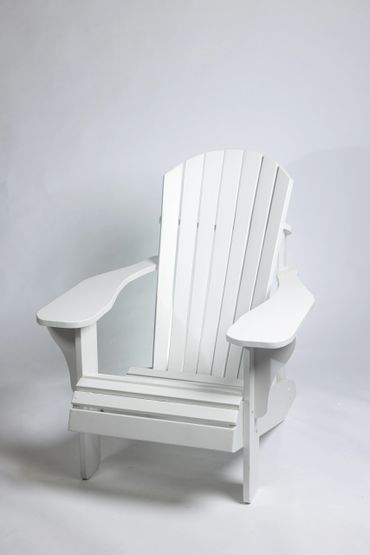 Our Adirondack chairs are make from an original 1941 template. This style originated in Westport NY, a region of the United States home to the Adirondack Mountains. This area had long presented a unique design challenge for those looking to lounge in outdoor furniture. Regular chairs just didn’t work on the frequent and steep slopes that gave the region its breathtaking views. Chairs with a level bottom left those who sat down pitching forward at an alarming angle and made tipping over forward a potential hazard. Experimenting with different angles and configurations until they found one that was just right: the original Adirondack featured a sloped seat and a solid piece of wood as the backrest.