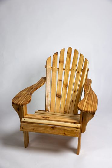 Our chairs use two different woods: pine and cedar. Pine is shown painted white. Cedar is a natural color with clear sealant.